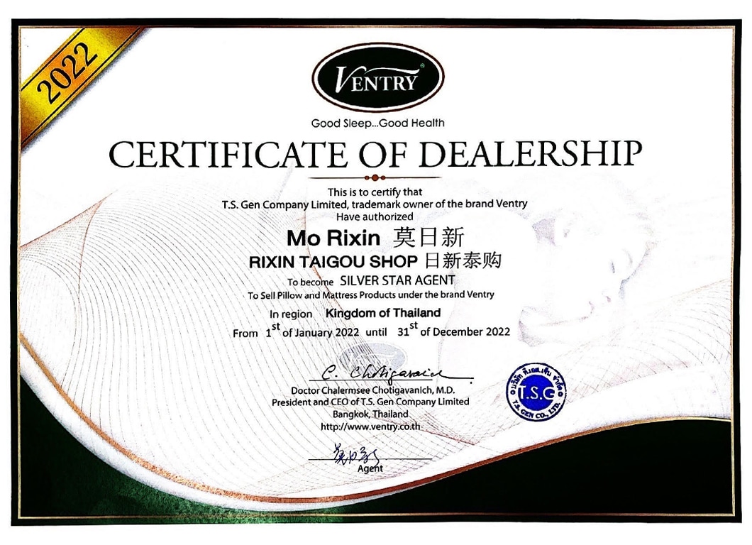 Authorized Dealer Certificate